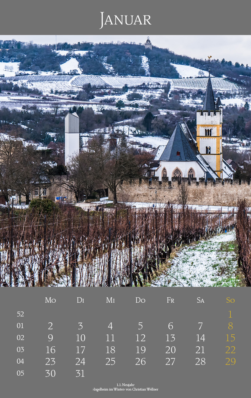 Das Motiv für den Monat Januar stammt von Christian Wellner und zeigt das Motiv ›Ingelheim im Winter‹.