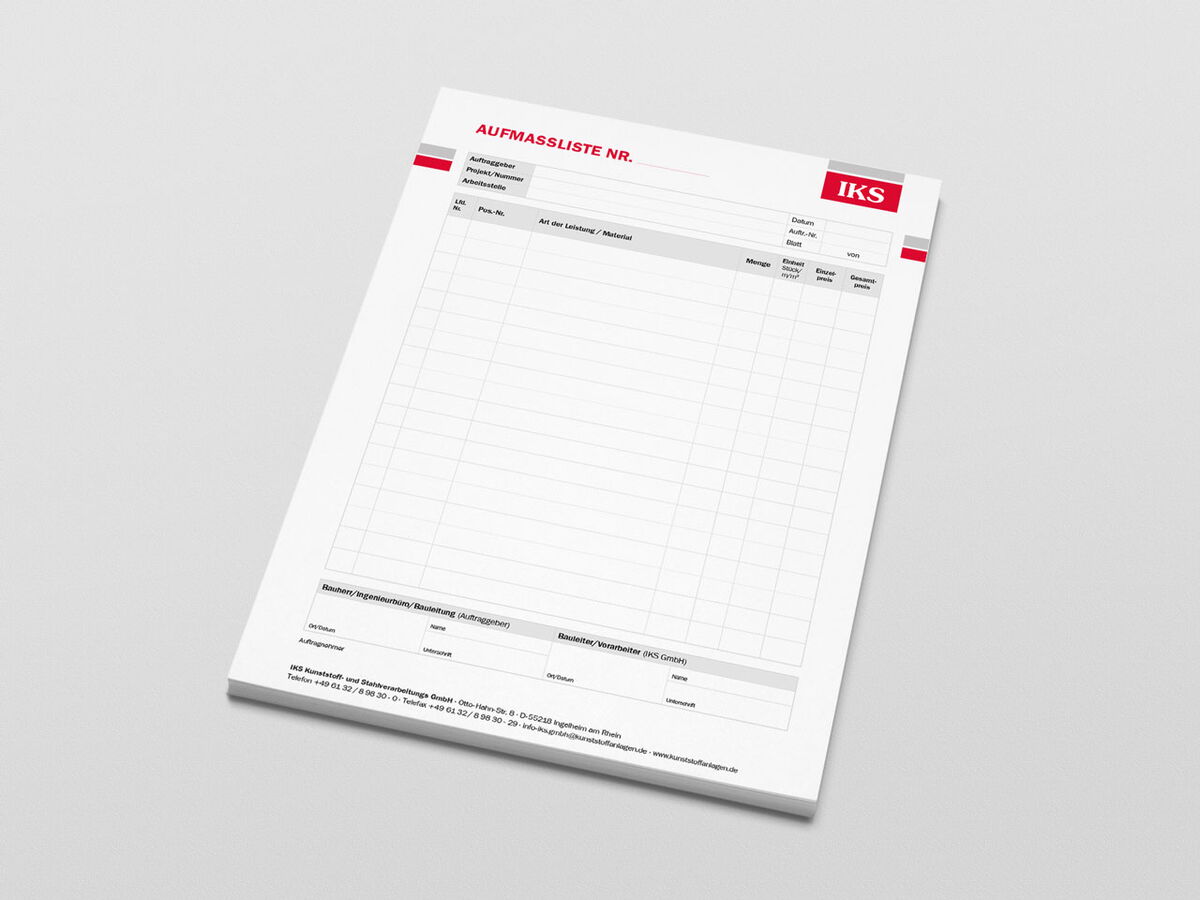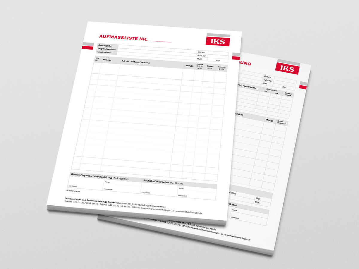 Für die IKS Kunststoff- und Stahlverarbeitungs GmbH hat INCOM verschiedene im laufenden Tagesgeschäft benötigte Formulare neu gestaltet. Hierbei wurde neben der CD-Konformität in erster Linie auch darauf geachtet, dass die Formulare anwenderfreundlich sind.