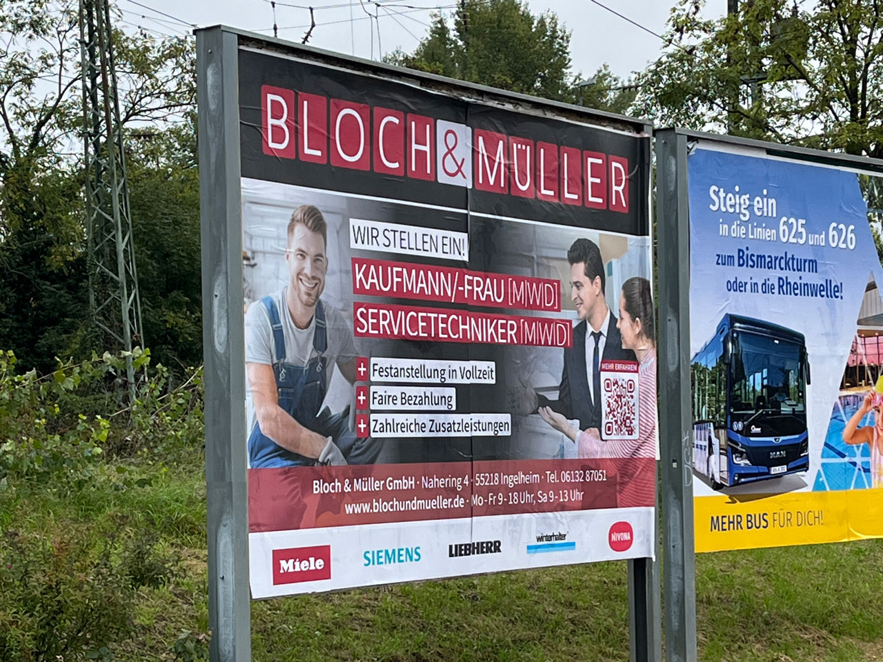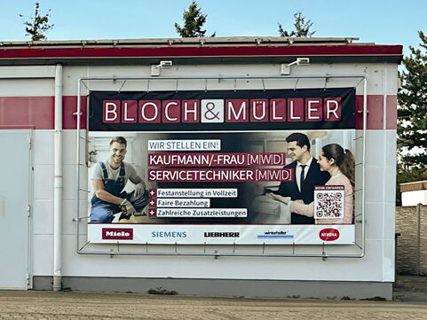 Aktuelle Werbemaßnahmen für den Haushalts- und Gewerbegeräte-Spezialisten Bloch & Müller.