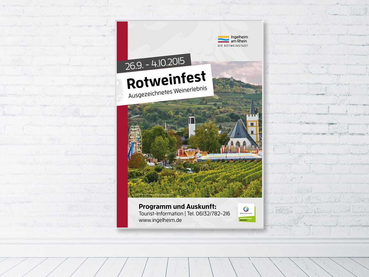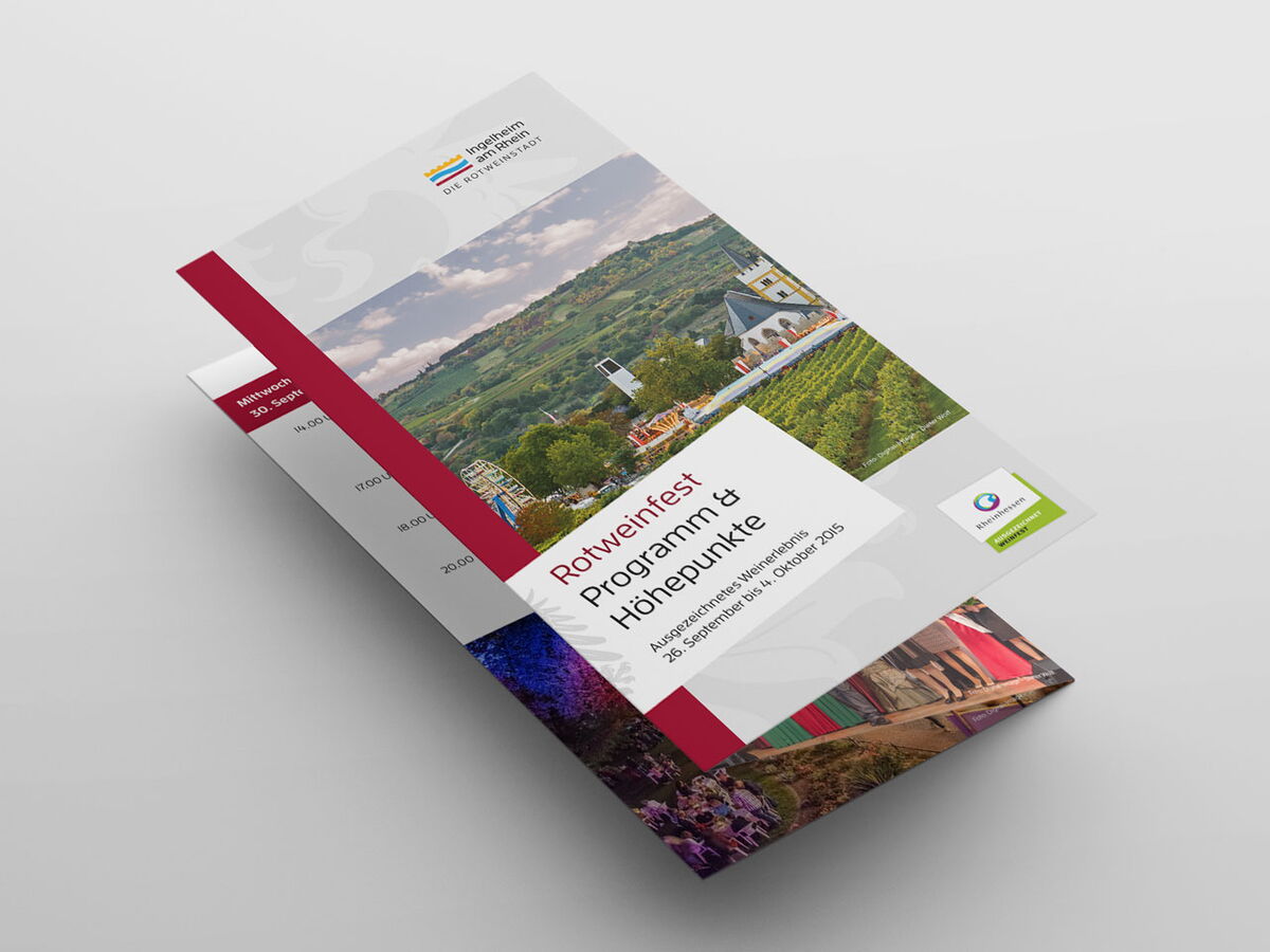 Der komplette werbliche Auftritt des jährlich im Herbst stattfindenden ›Rotweinfestes‹ wurde überarbeitet, dazu zählen diverse Plakate, Anzeigen und vor allem das Festprogramm. Für das neu initiierte Frühlingsweinfest am Winzerkeller wurden Plakate und Straßenbanner realisiert.