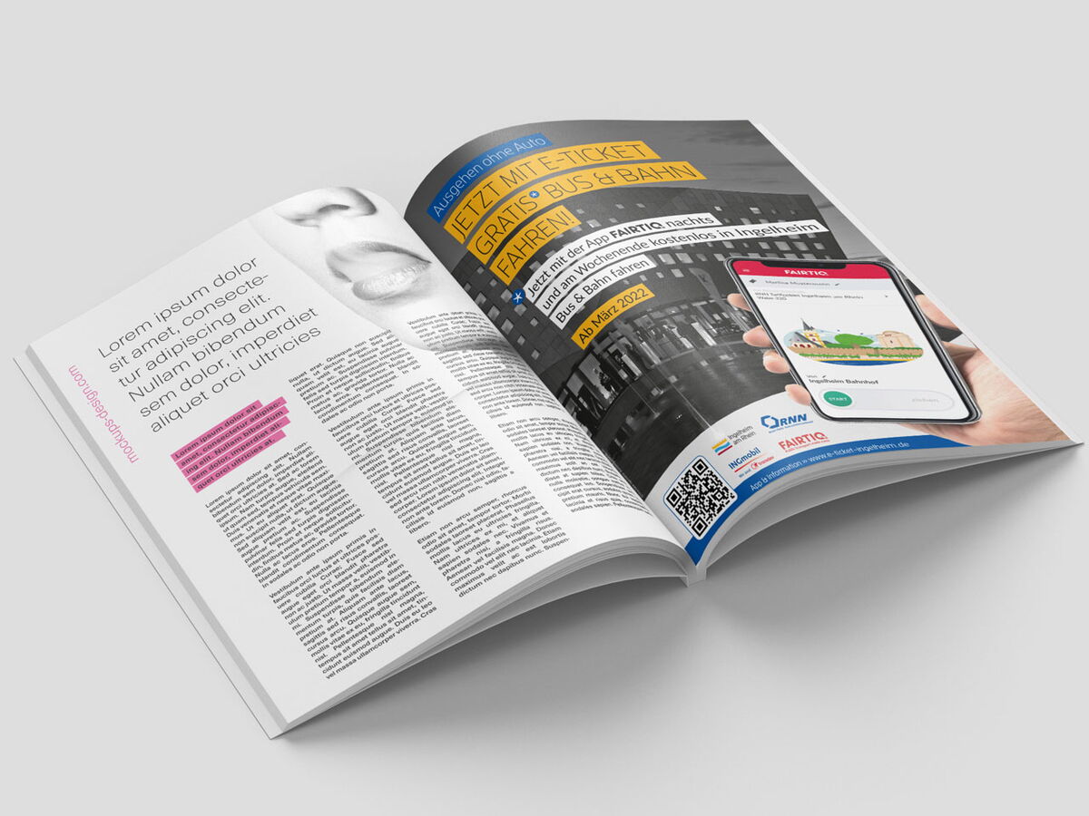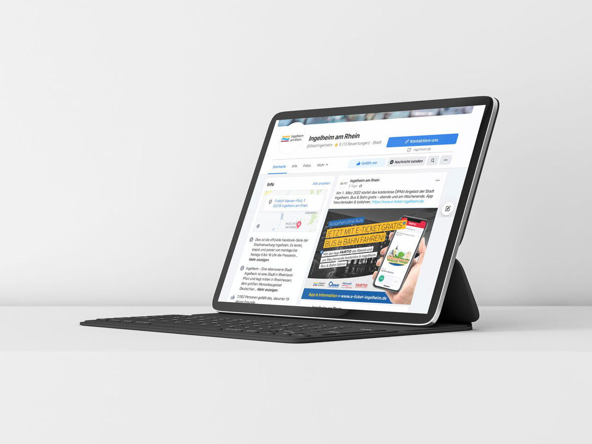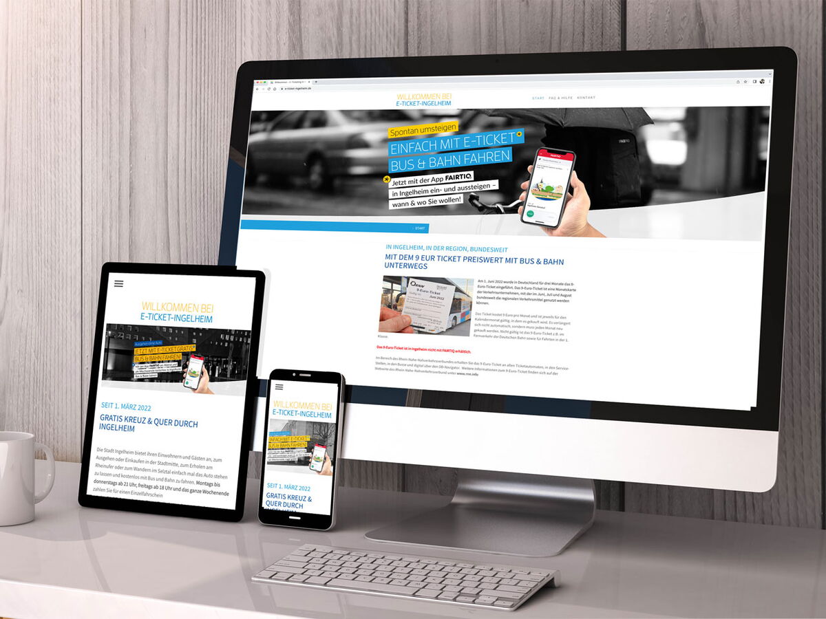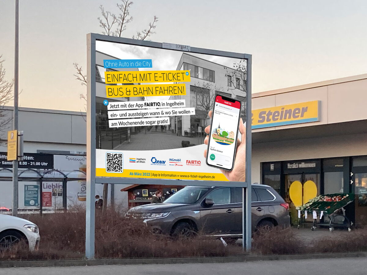 Realisiert wurden Anzeigen, Plakate Großfläche, Plakate A3, Informationsfolder, Buswerbung, Bahnhofswerbung, Bodenaufkleber, Rollups & Theke Infostand, Social Media Posts und Presseinformationen. Zudem wurde mit www.e-ticket-ingelheim.de eigens eine Website zu diesem Thema erstellt.